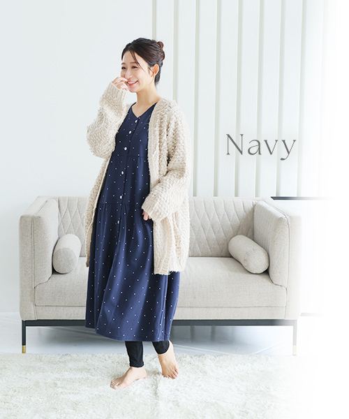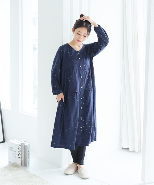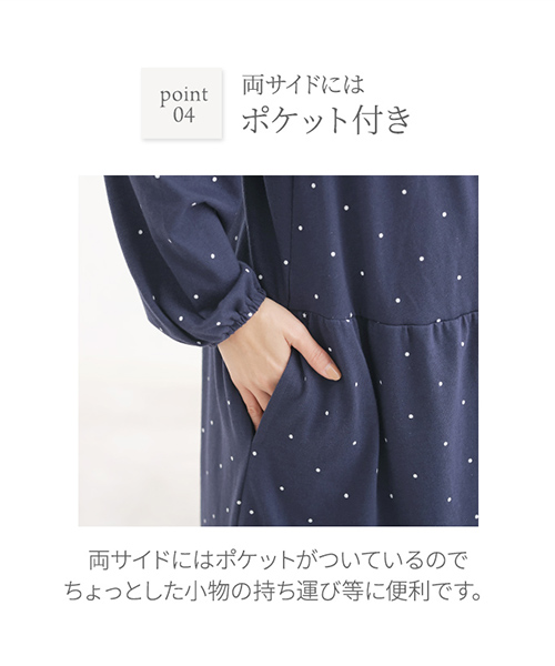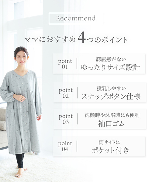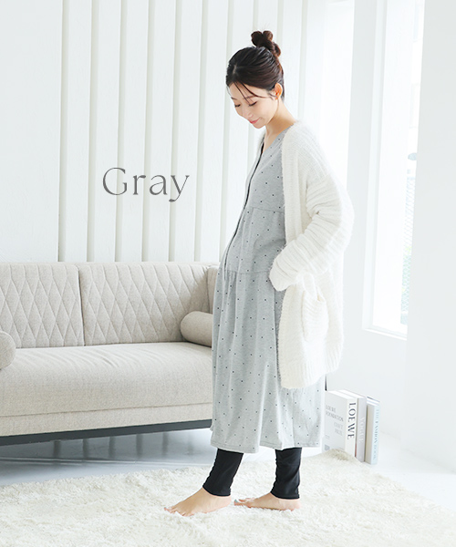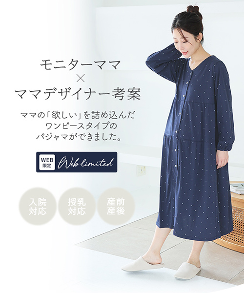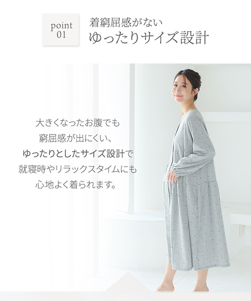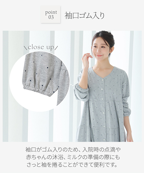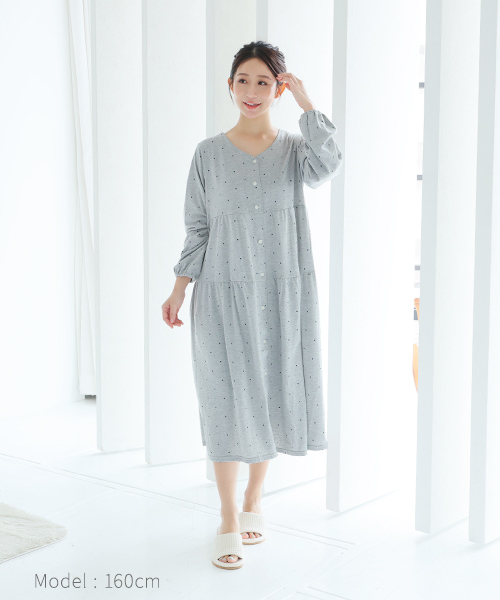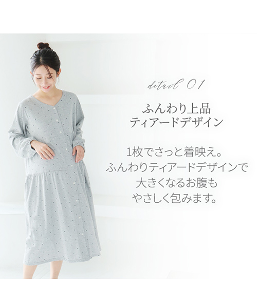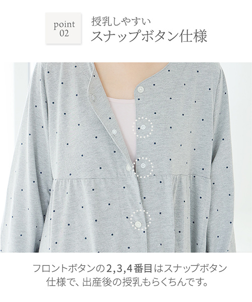 【Web限定】長袖ドット柄ティアードマタニティネグリジェ | マタニティウェア・授乳服
