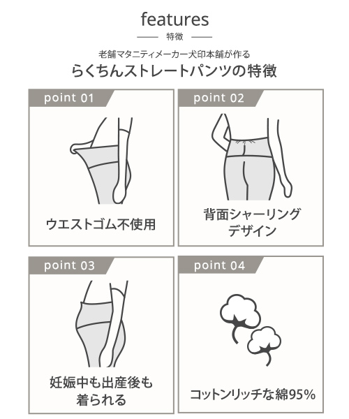 204-8351 犬印本舗 マタニティパンツ ストレート パンツ マタニティ パンツ M L LL 大きいサイズ 黒 チャコールグレー 綿 コットン コットンリッチ ルームウェア 部屋着 リームパンツ パジャマ ズボン らくちん マタニティウェア マタニティーパンツ マタニティー ストレッチ 伸縮 妊娠 妊婦 出産 産後 春 夏 コーデ らくちんパンツ 10分丈 INUJIRUSHI 犬印