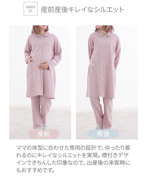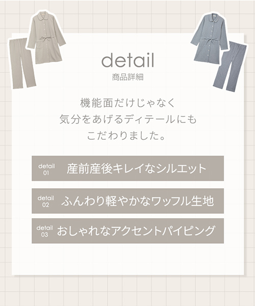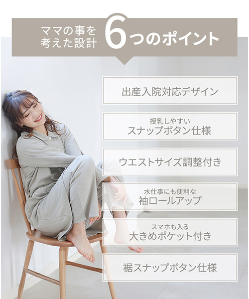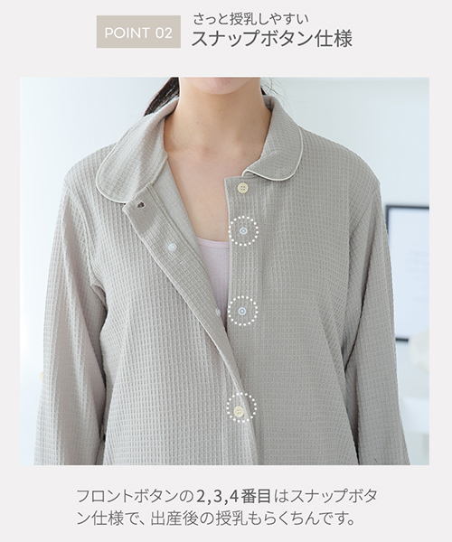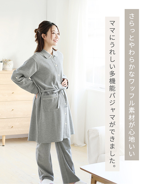 長袖、ワッフルマタニティパジャマ | マタニティウェア・授乳服