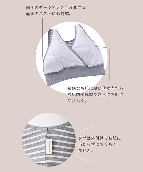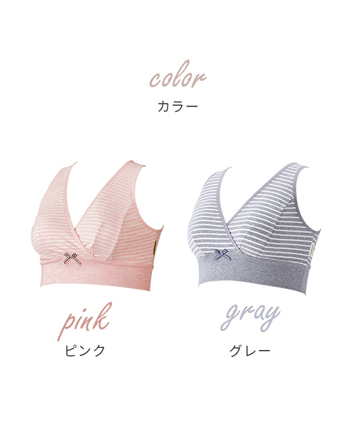 br1624 犬印本舗 マタニティ ブラ ハーフトップ コットンリッチ 綿 大きいサイズ カシュクールオープン 授乳ブラ ノンワイヤー M L LL グレー ピンク ボーダー 授乳 妊娠 出産 出産準備 らくちん 肌に優しい 敏感肌 妊婦 下着 マタニティブラジャー 授乳用ブラジャー ナイトブラ 授乳しやすい 蒸れにくい 金具なし ストレッチ 簡単授乳 INUJIRUSHI 犬印