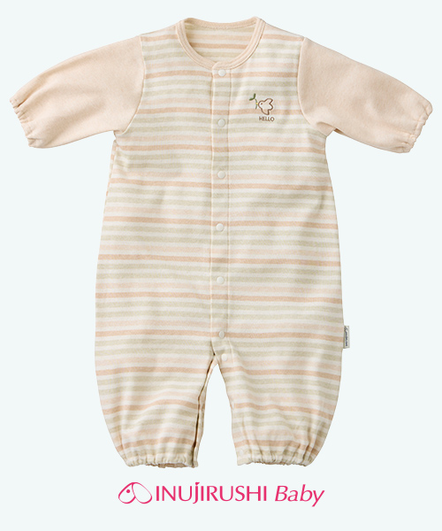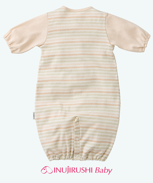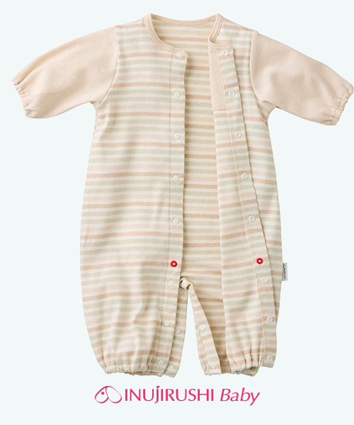 B246100 犬印本舗 ベビー オーガニック ドレス&カバーオール | 赤ちゃん 新生児 ウェア アウター 50 60 サイズ 長袖 ボーダー 柄 ベージュ 綿100 綿 オーガニックコットン フライス 素材 男の子 女の子 日本製 春 夏 秋 冬 コーデ 可愛い コンビドレス 2wayオール ベビー服 ベビー用品 ベビーウェア プレゼント 出産祝い ギフト 犬印 INUJIRUSHI Baby