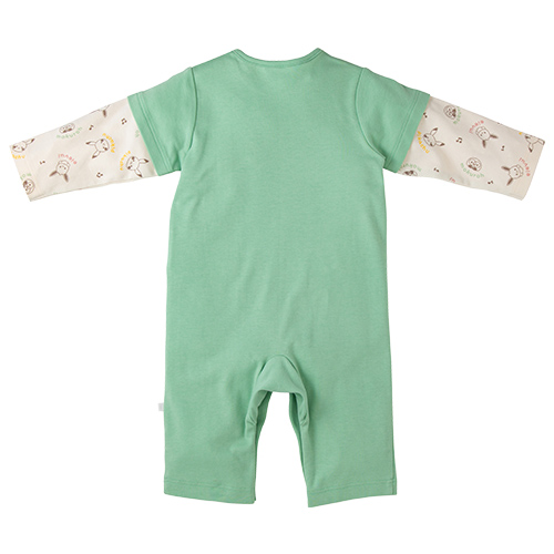 - 重ね着している風のレイヤード調カバーオール。