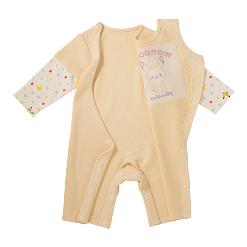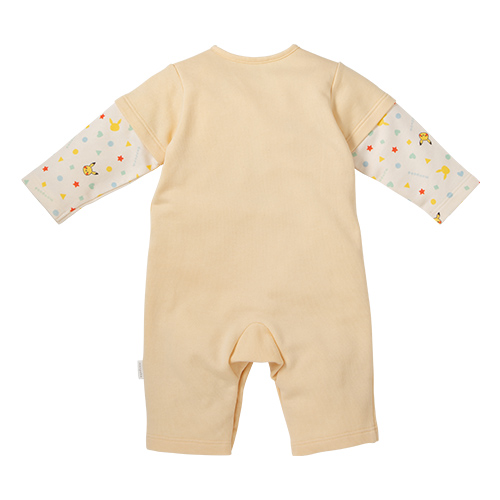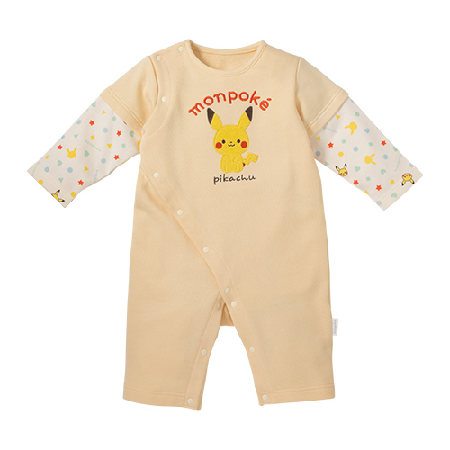 | 商品概要 | 長袖と半袖を重ね着した風のレイヤード調のロンパース。 胸にはピカチュウの刺繍、総柄部分にもピカチュウの総柄プリントが入っています。 |