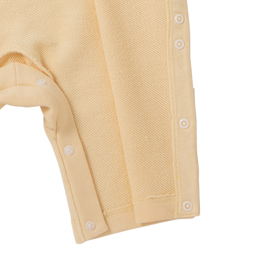 長袖と半袖を重ね着した風のレイヤード調のロンパース。