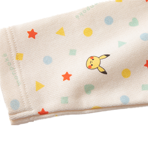 胸にはピカチュウの刺繍、総柄部分にもピカチュウの総柄プリントが入っています。