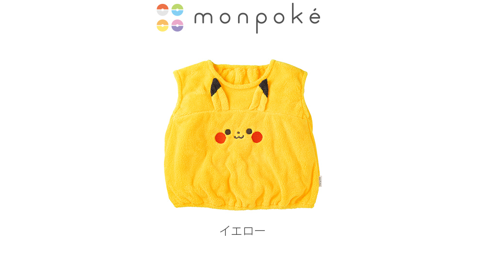 | 商品概要 | さっとかぶれるピカチュウのスモック。 前身頃のピカチュウの顔がポイント。 後身頃にはしっぽの刺繍も入っています。 |