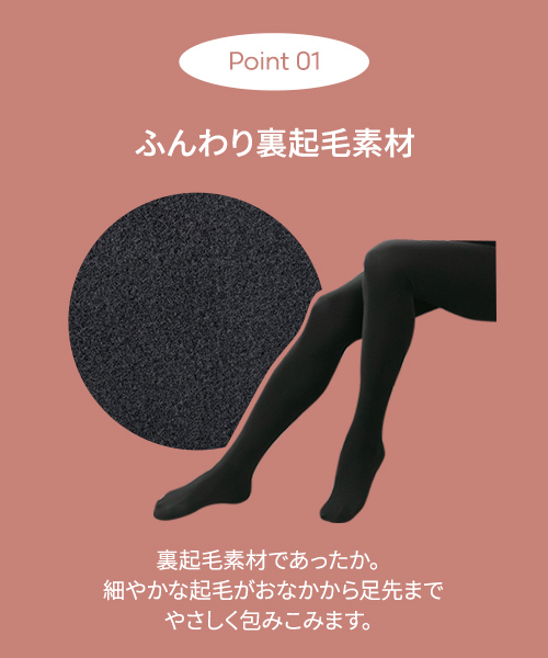 ・見た目スッキリ!ゆったり履けてあたたかい裏起毛タイツ ・通常の裏起毛タイツよりも伸びが良いので、おなか周りを締め付けずラクに着用して頂けます。 ・冷え対策にもおすすめ! ・股下の伸びが良いので足首まであったか!足元までゆったり着用出来ます。 ・ウエストらくらく仕様 ・160デニール相当 ▼同シリーズのレギンスタイプはこちら 裏起毛ウエストらくらくレギンス |
